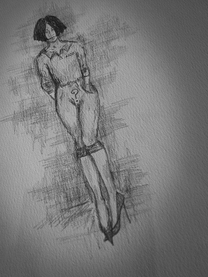 sweating it out in her tiny dungeon;